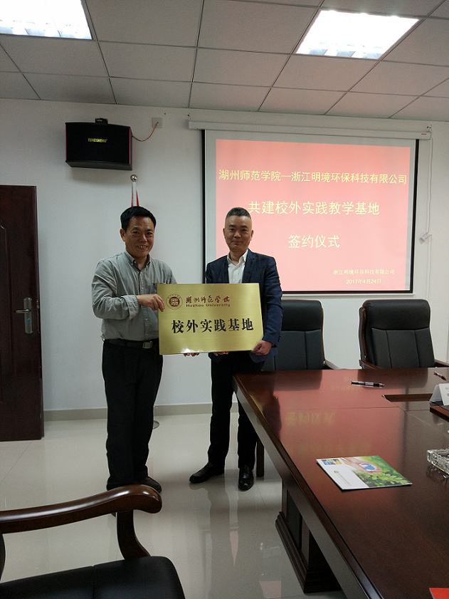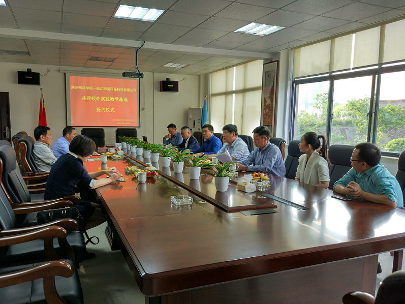 浙江明境環(huán)保科技有限公司與湖州師范學(xué)院,共建大學(xué)生校外教育基地,強(qiáng)化及細(xì)化校企合作的簽約