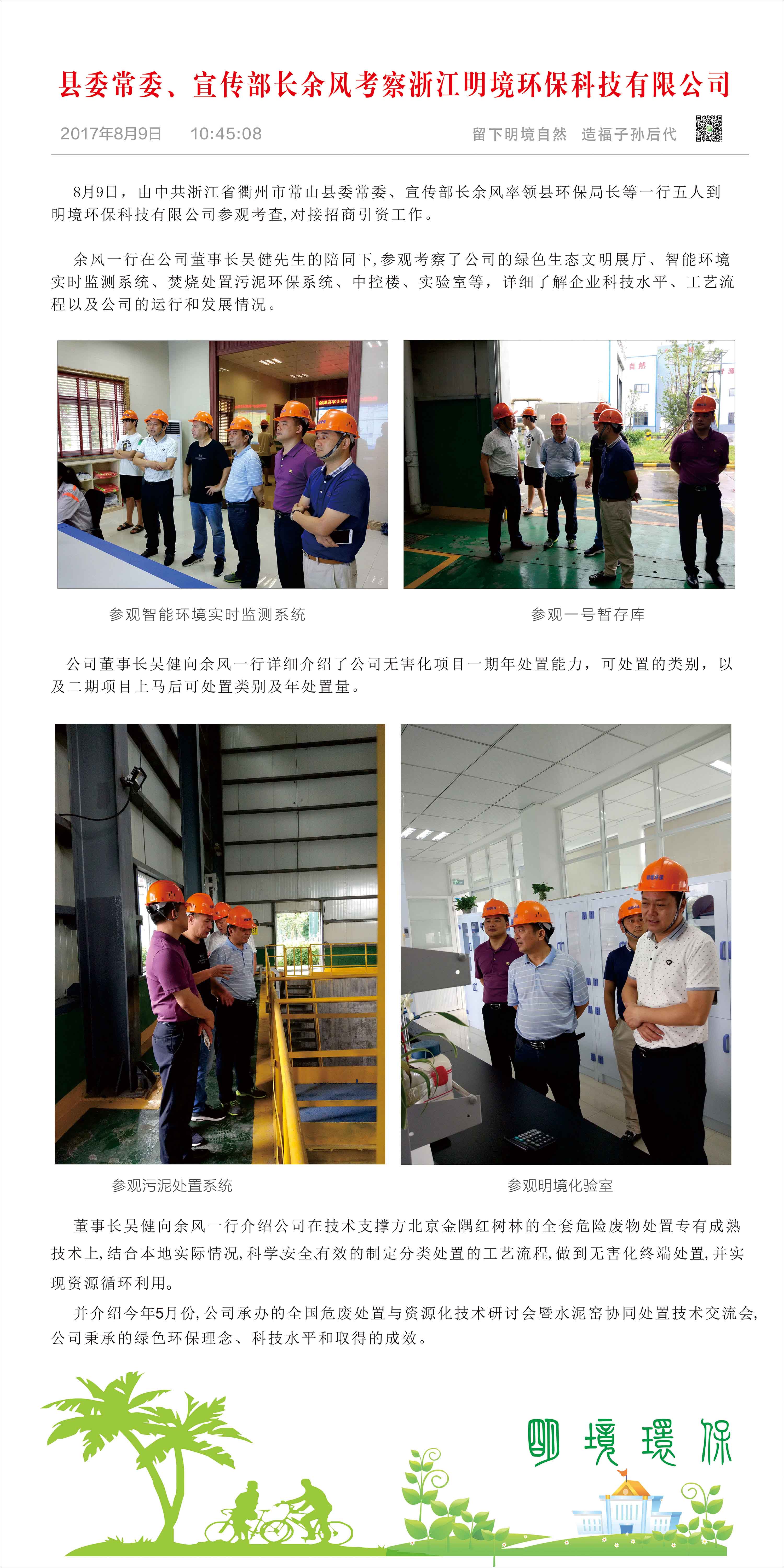 常山縣委常委、宣傳部長余風率隊到明境公司參觀考察
