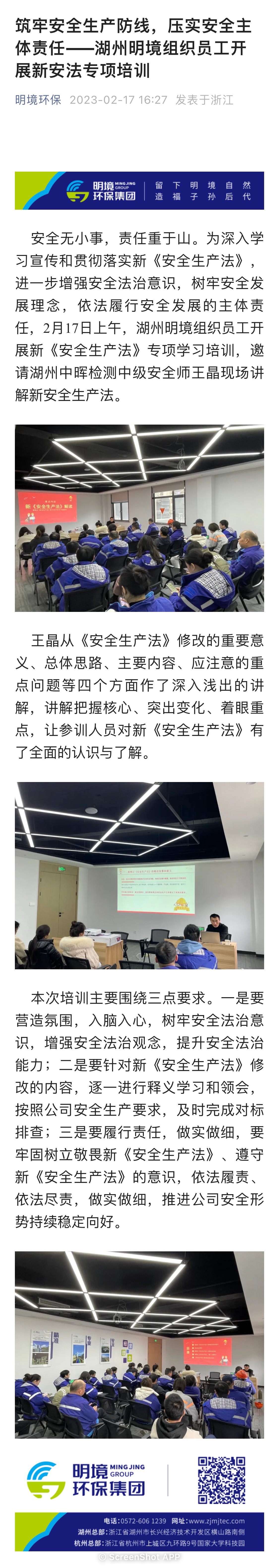 筑牢安全生產防線,壓實安全主體責任——湖州明境開展新安法培訓